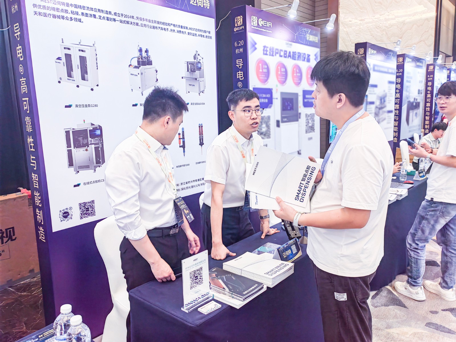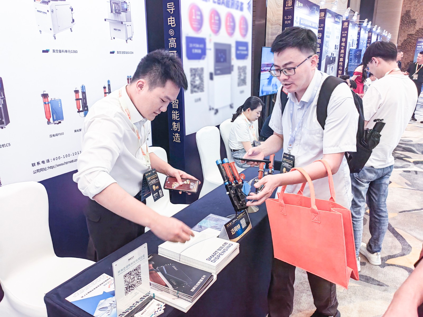 CEIA研討會現(xiàn)場,邁伺特專業(yè)團隊亮相,針對電子元器件點膠難點提出點膠、粘接、涂覆、灌封等方面的一站式解決方案,贏得觀眾廣泛認同,現(xiàn)場氣氛熱烈。
