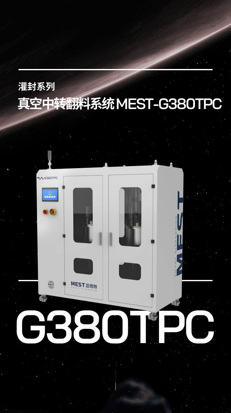真空中轉(zhuǎn)翻料系統(tǒng)MEST-G380TPC用于處理會與水分發(fā)生反應(yīng)或需要在真空中準備的高粘度50000-100000敏感材料,具備 加熱、攪拌、抽真空等膠水預(yù)處理功能,常與壓盤泵搭配使用。